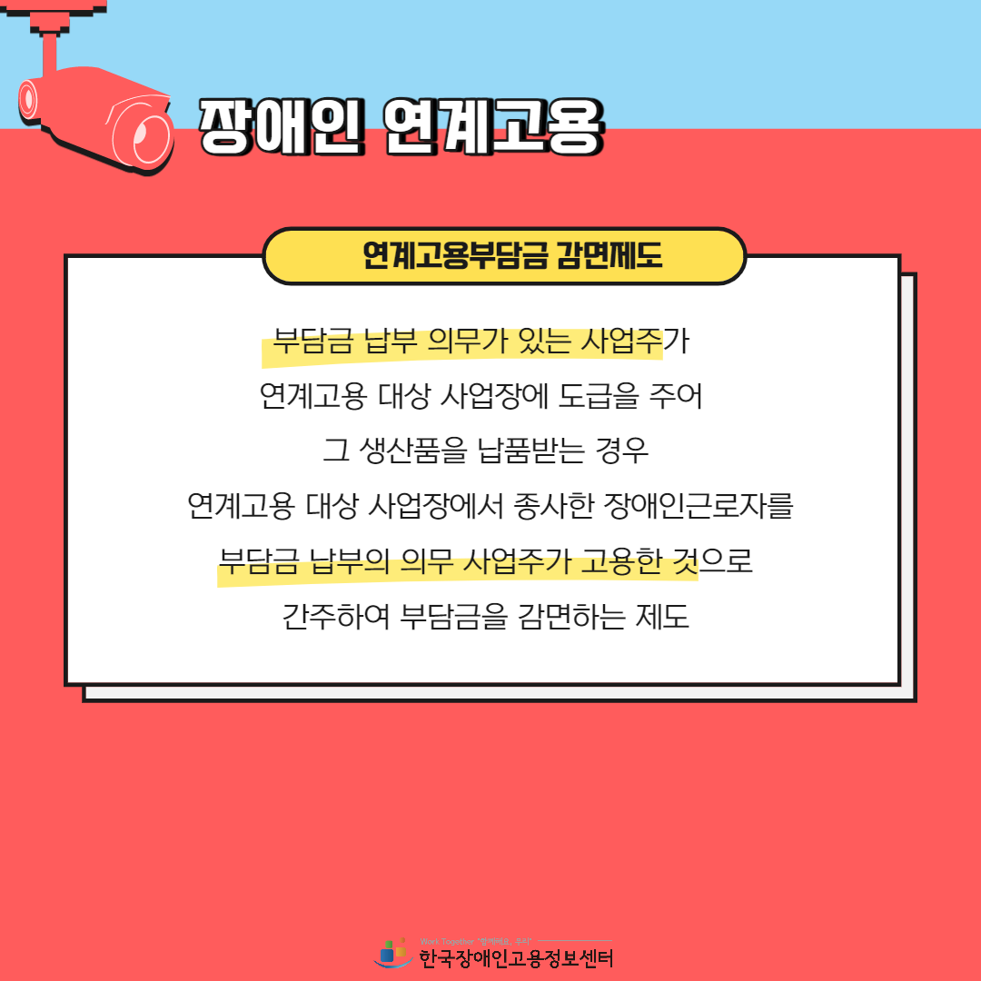 안녕하세요. 매년 1월이 지날 때마다 납부해야 하는 장애인 고용부담금으로 기업에서 부담을 느끼게 되고 있습니다. 오늘은 고용부담금으로 인해 많은 금액을 지출해야 하는 기업들이 활용할 수 있는 부담금 절감 제도중 하나인 장애인 연계고용제도가 무엇인지, 어떻게 하면 고용부담금을 절감할 수 있는지 한국장애인고용정보센터와 함께 알아보도록 하겠습니다.