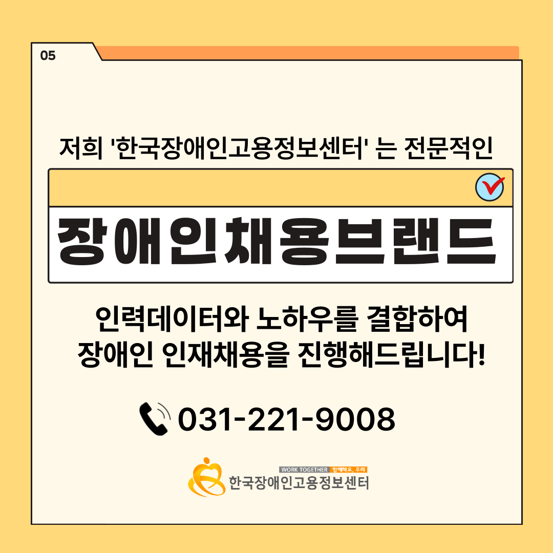안녕하세요. 장애인채용 전문기업 한국장애인고용정보센터입니다.