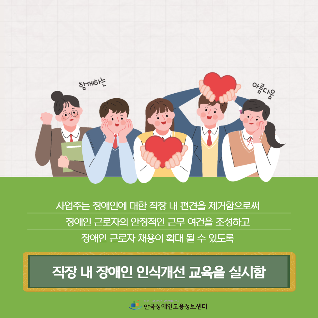 부과되니 직장 내 장애인 인식개선 교육을 꼭 실시하셔야겠습니다.